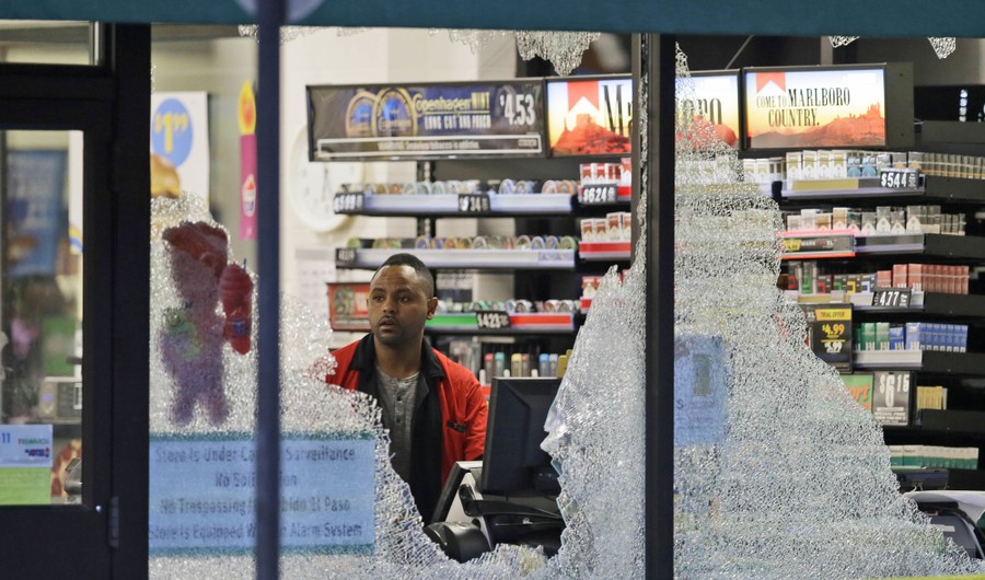 Read moreA clerk looks at broken windows shot out at a store in downtown Dallas, July 8, 2016. Snipers opened fire on police officers in the heart of Dallas during protests over two recent fatal police shootings of black men. #
