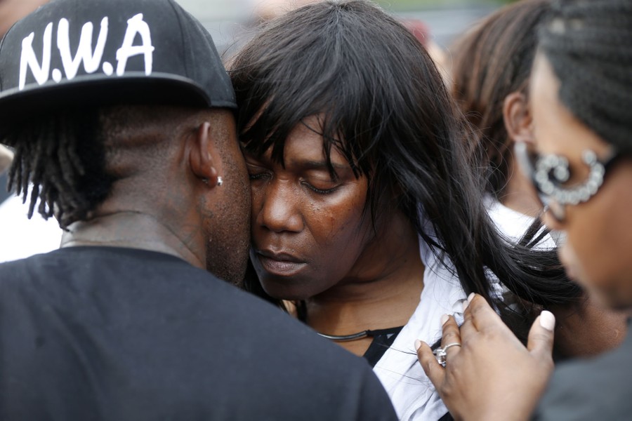 Read moreSandra Sterling, aunt of Alton Sterling, is comforted at a vigil outside the Triple S convenience store in Baton Rouge, Louisiana, July 6, 2016. Sterling, 37, was shot and killed outside the store by Baton Rouge police, where he was selling CDs. #