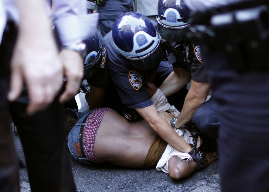 Read moreA protestor is detained by NYPD officer as people take part in a protest for the killings of Alton Sterling and Philando Castile during a march along Manhattan's streets in New York, July 7, 2016. #
