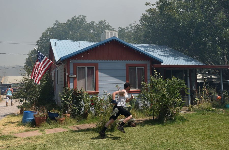 Read moreDarcy Schmidt, left, and Alex Green, right, hustle to evacuate as flames approach their uncle's home off Bonham Road near Lower Lake, California, on August 14, 2016. #