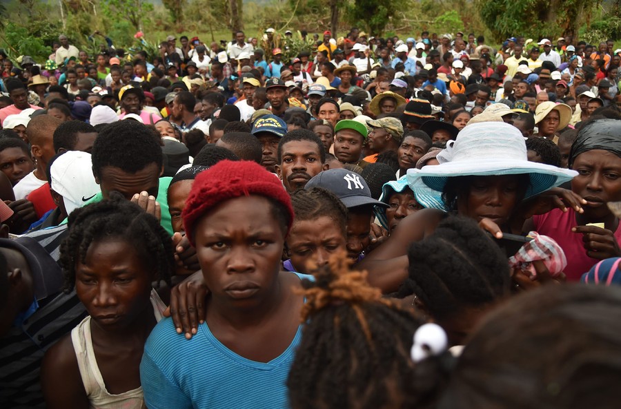 Read moreHurricane Matthew victims wait the start of a delivery of food from the UN's World Food Program in the commune of Maniche, in Les Cayes, in the southwest of Haiti, on October 17, 2016. #