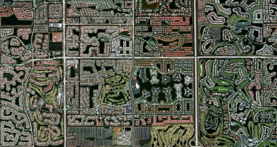Read more26.386332°, –80.179917° Residential development is seen in Boca Raton, Florida. Because many cities in the state contain master-planned communities, often built on top of waterways in the latter half of the 20th century, there are a number of intricate designs that are visible from this perspective. Boca Raton is home to roughly 91,000 residents. #