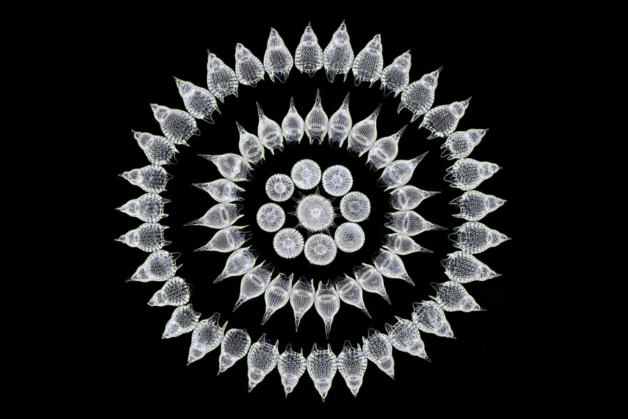 Read moreSixty-five fossil Radiolarians (zooplankton) carefully arranged by hand in Victorian style (100x). #