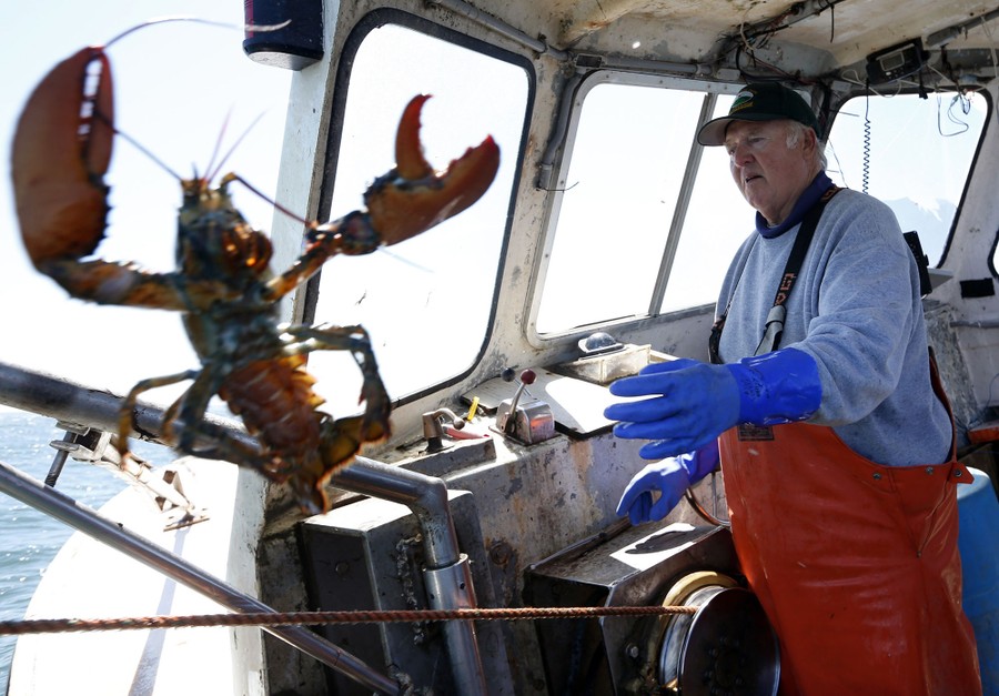 Read moreRichard Sawyer, Jr. tosses back an undersized lobster while fishing on Long Island Sound off Groton, Connecticut, on April 27, 2016. Sawyer, a third-generation lobsterman, fears there won't be enough lobster for his sons and grandsons to work as fishermen. He is one of only a half-dozen lobstermen working in an area of the Sound that he says once had 75. Many fisherman have quit because of the dwindling lobster populations. Sawyer blames pollution from sewage treatment plants, pesticides and warming waters caused by climate change. #