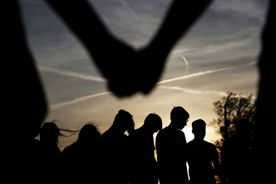Read moreYoung people hold hands for a prayer during a gathering at sunset outside the Christian Fellowship Church in Benton, Kentucky, on April 10, 2016. Nearly a quarter of Americans say they no longer affiliate with a faith tradition. It's the highest share ever recorded in surveys, indicating the stigma for not being religious has eased, even in heavily evangelical areas. Americans who say they have no ties to organized religion, dubbed "nones," now make up about 23 percent of the population, just behind evangelicals, who comprise about 25 percent, according to the Pew Research Center. #