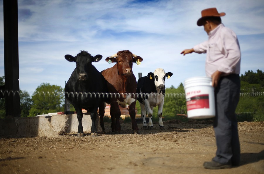 Read moreRalph Caldwell talks to his cattle at his farm in Turner, Maine, on May 26, 2016. Caldwell blames the government's ethanol subsidies for driving up corn prices, making it too expensive to buy feed for his cows and forcing him out of the dairy business. He now raises organic beef cattle, and also sells loam, firewood and cow manure. #