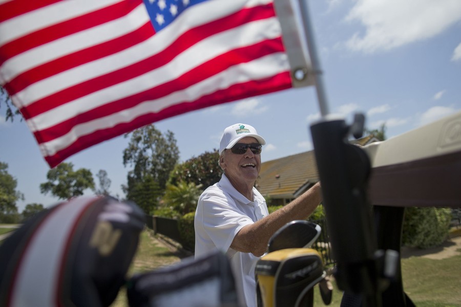 Read moreDuncan Wallace plays golf in Vista, California, on May 4, 2016. Wallace, who owns a medical supplies company, said he’s been a conservative for 50 years, ever since he read Barry Goldwater’s book, “Conscience of a Conservative." “I think we punish success, actually,” he said. “I know a lot of people who are quite successful, and they are paying an awful lot of money in taxes. They are paying for people who don’t have their oar in the water.” #