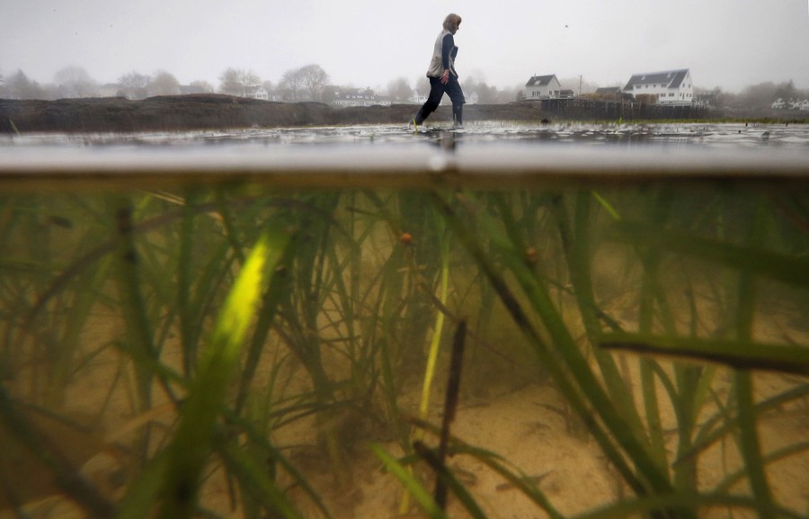 Read moreEel grass grows in sediment at Lowell's Cove in Harpswell, Maine, on May 8, 2016, where marine biologist Diane Cowan has been recording data on juvenile lobsters for the past 24 years. Cowan says the rise of sea level has ruined some of her sites, including this once rocky location. Dr. Cowan is saddened by the some the abrupt changes brought on by global warming that she has witnessed while collecting data on lobsters. “Biology works by change and evolution. And we need to understand this,” she said. The goal of her research for the Lobster Conservancy is to maintain a strong and healthy lobster population which is vital to coastal Maine communities. #