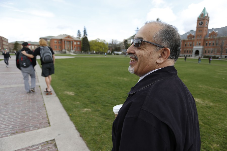 Read moreSamir Bitar, Arabic studies professor at the University of Montana, walks to his class on campus in Missoula, Montana, on April 13, 2016. Bitar, a Palestinian who moved to Montana as a 16-year-old to attend college in Missoula, finds current anti-Muslim sentiments in the U.S. disheartening. People now are “motivated by pure emotion and not really thinking in logical terms,” he says. “Fear turns into hatred.” #