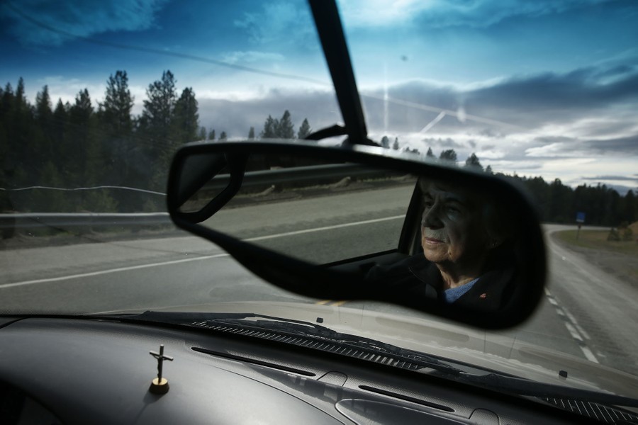 Read moreGloria Roark, a vocal opponent of refugees coming to her state, drives near her ranch land outside Clearwater, Montana, on April 12, 2016. Roark helped organize anti-refugee rallies, including at the state capital and another in Missoula. #