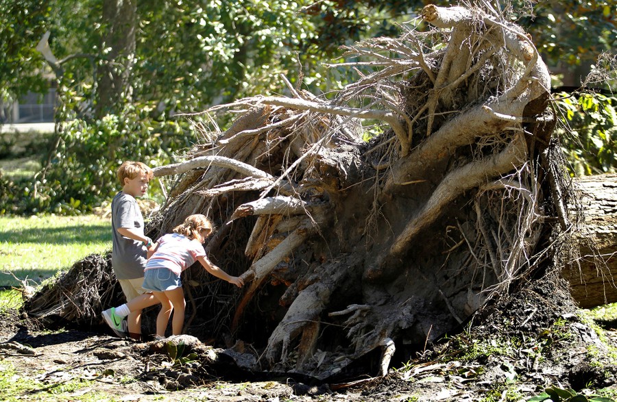 Read moreTen-year old Jack Terry (left), and his six-year old sister Bailey, check out a huge tree that uprooted in Forsyth Square following Hurricane Matthew after the storm passed through in Savannah, Georgia, on October 9, 2016. #