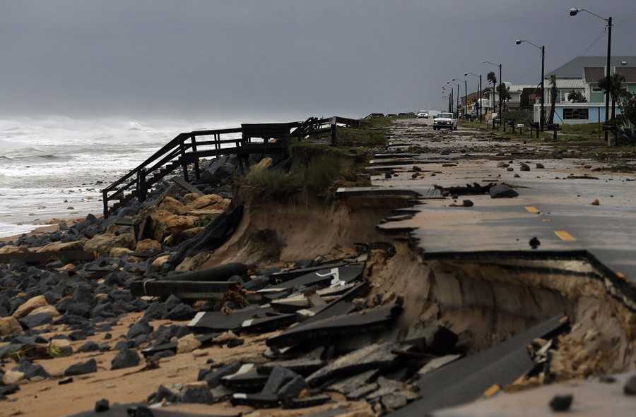 Read moreAn official vehicle navigates debris as it passes along Highway A1A after it was partial washed away by Hurricane Matthew, on October 7, 2016, in Flagler Beach, Florida, #