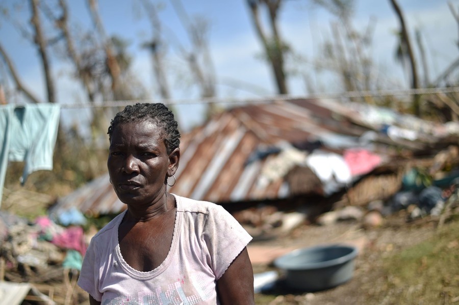 Read moreWana stands in front of the remains of her house where she and her husband became trapped during Hurricane Matthew, in Mon Ville, a rural zone of Les Cayes, in the southwest of Haiti, on October 9, 2016. #