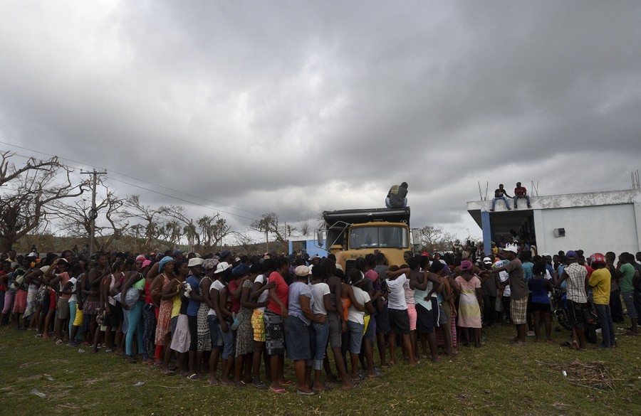 Read morePeople line up for food and clothes being distributed at a shelter in Port-Salut, southwest of Port-au-Prince, on October 9, 2016, days after the passage of Hurricane Matthew through Haiti. #