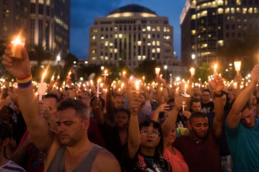 Read morePeople hold candles during an evening memorial service for the victims of the Pulse Nightclub shooting, at the Dr. Phillips Center for the Performing Arts, June 13, 2016, in Orlando, Florida. The shooting at Pulse Nightclub, which killed 49 people and injured 53, was the worst mass-shooting event in American history. #