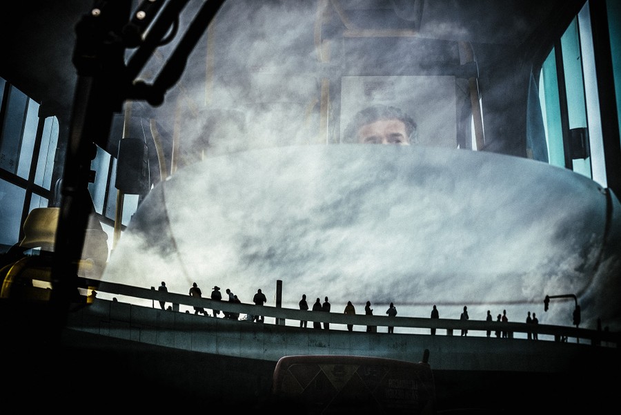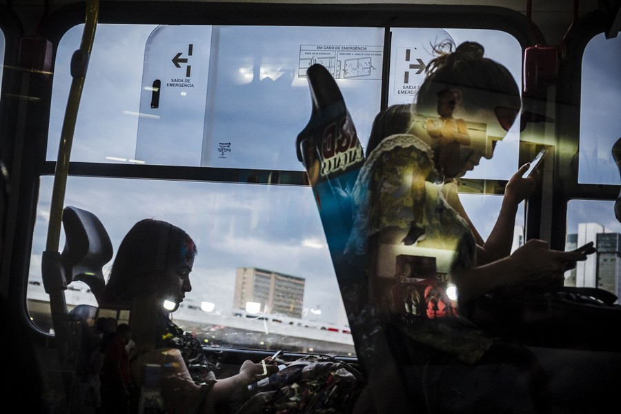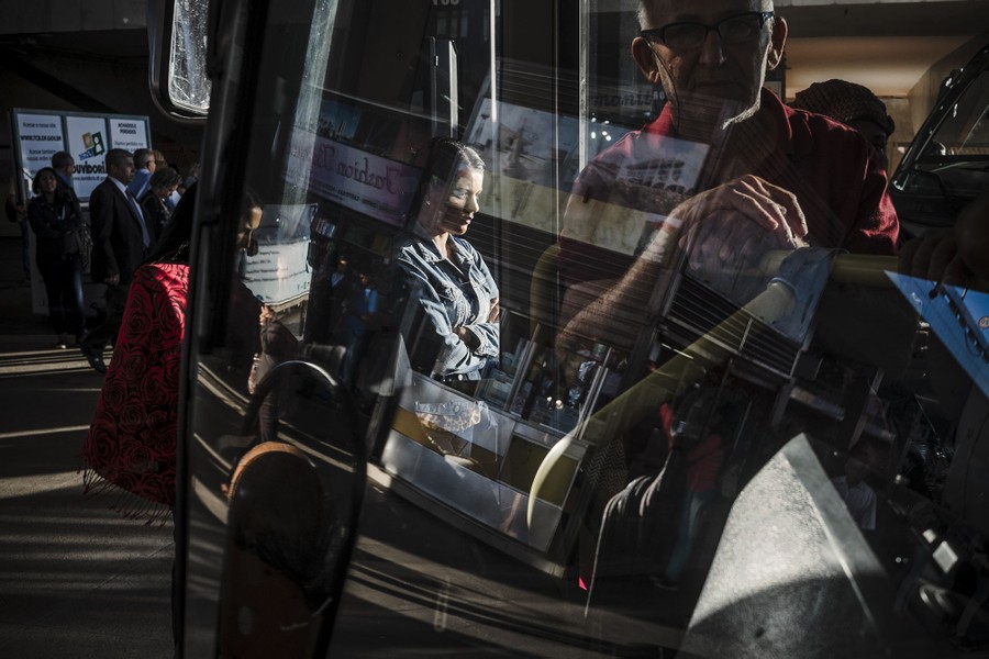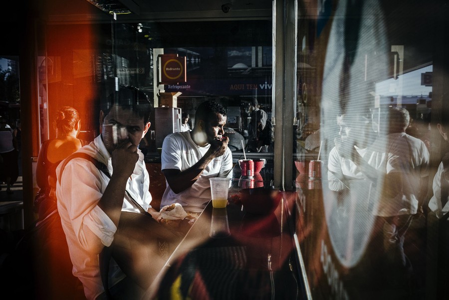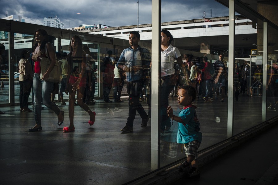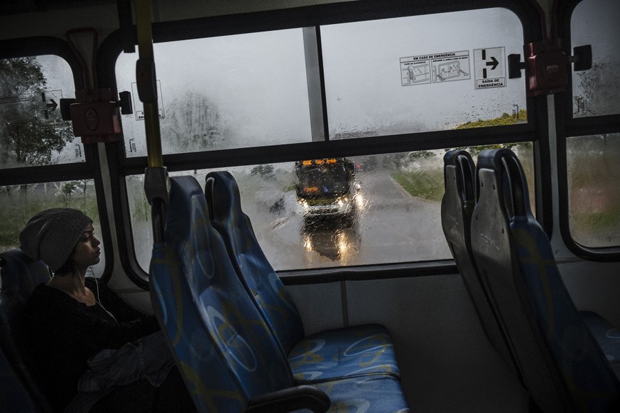 At first, photographer Gustavo Minas didn’t know what to make of Brasília. Originally from a bucolic town in Brazil’s countryside, he was surprised by the carefully plotted capital, which seemed static; the cavernous public spaces and modernist sidewalks were perennially empty. “The only place I could find some chaos and energy was in the central transport station,” he said. Nearly one million people pass through Rodoviária do Plano Piloto’s corridors daily, connecting the wealthy urban center with the less prosperous regions surrounding it. “It’s a place where two worlds mix—people both from the lower-class satellite towns and from the affluent blocks within Plano Piloto,” Minas said. “It’s also the place where many hopeless outsiders who come to the capital roam, trying to get a job or begging, sleeping under its arcades at night, by themselves or with their families.” Minas captures the frenzy of the transportation hub in his essay “Rodoviária,” or “Bus Stop,” with images that reveal a symphony of commuters, buses, shadows, glass, and concrete.