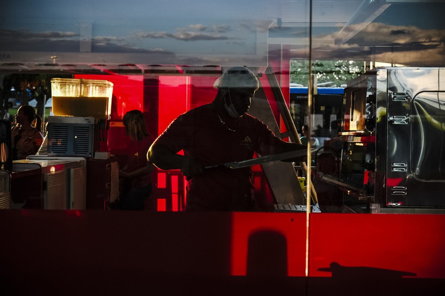Read moreA chef bakes pizzas at one of the cafés at Rodoviária do Plano Piloto, October 13, 2016. Rides are long, and many people take two buses to get to work or to go home, so commuters often grab a bite at the station. #