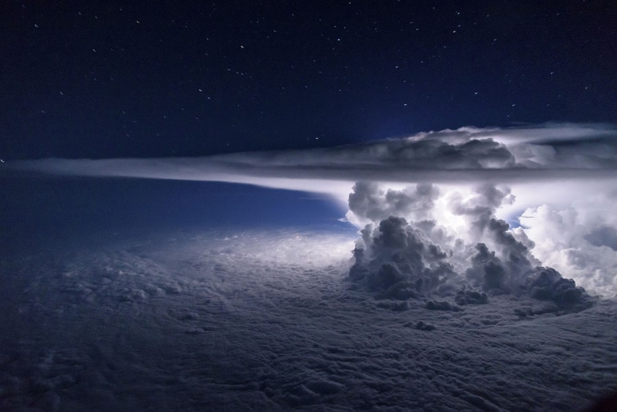 Read morePacific Storm, 3rd Place, Landscape. An isolated cumulonimbus storm developed over the Pacific Ocean a few miles south of the coast of Panama City. It sat atop a temperature inversion that created a thick overcast layer of clouds. The strong updrafts of the storm quickly reached the tropopause and spread out, creating the characteristic anvil. The strongest updrafts pierced the tropopause and turned into what scientists call the overshooting tops. The entire frame was lit by a single lightning from within the storm in a moonless night on June 16, 2016. #