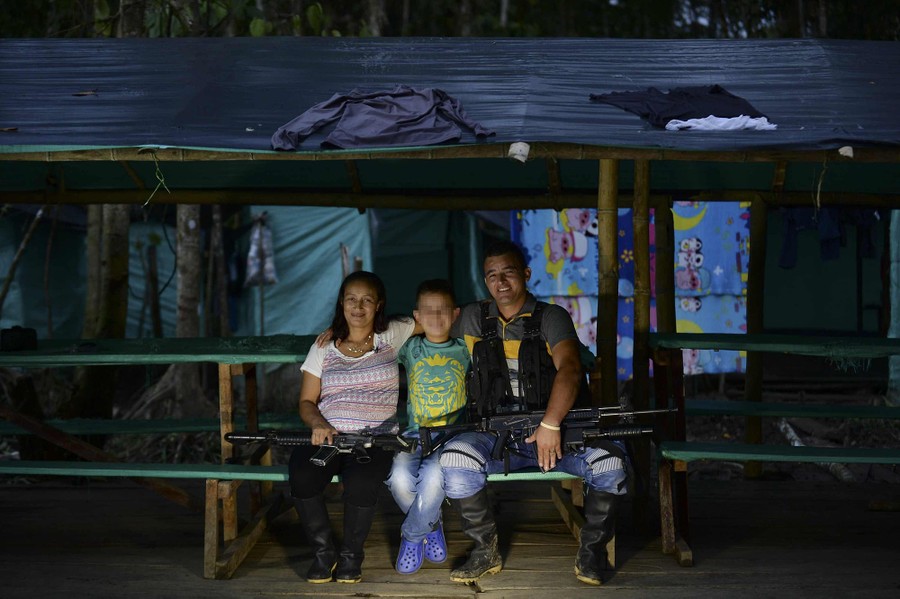 Read moreFARC guerillas Fabio Grinon (right) and Johana Zapata, pose with their son, who came for a two-day Christmas visit, during an interview with AFP at the Alberto Martinez front camp just days before their demobilization to final concentration zones on December 30, 2016. [Editor's note: Child's face pixelated at source.] #