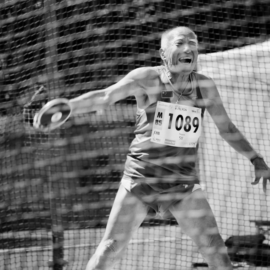 Read morePengxue Su, 87, of China, the oldest decathlete (and the only competitor in the 85-89 age division) competes in the discus, the second event on the second day of the men's combined events, or decathlon, on August 6, 2015 at the Balmont Duchère stadium in Lyon, France during the 2015 World Masters Athletics Championships. #