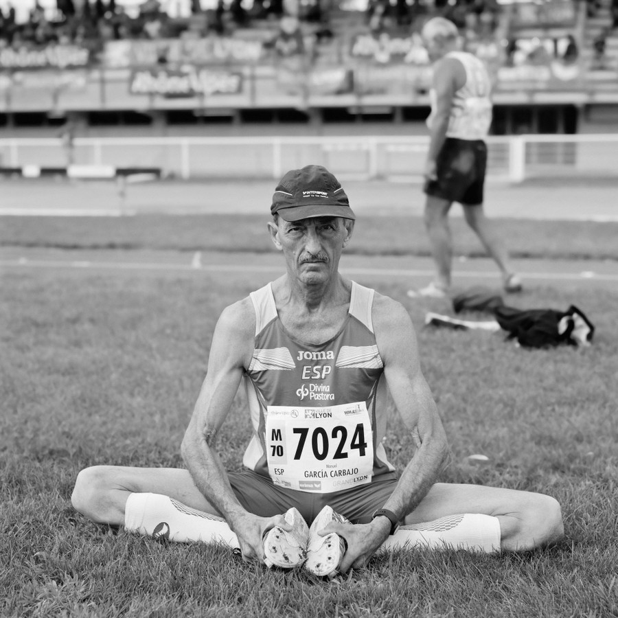 Read moreMasters track and field triple jumper Manuel GarcÌa Carbajo, 72, of Spain, stretches between jumps at the World Masters Athletics Championship at the Stade du Rhône in Lyon, France on August 9, 2015. #