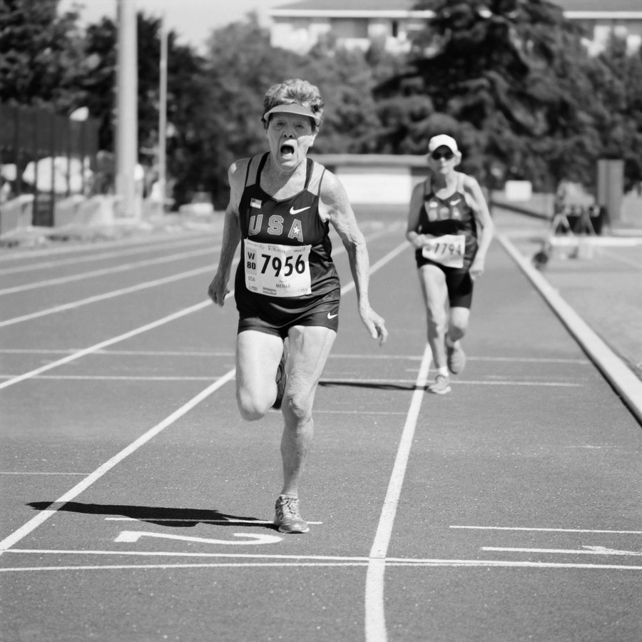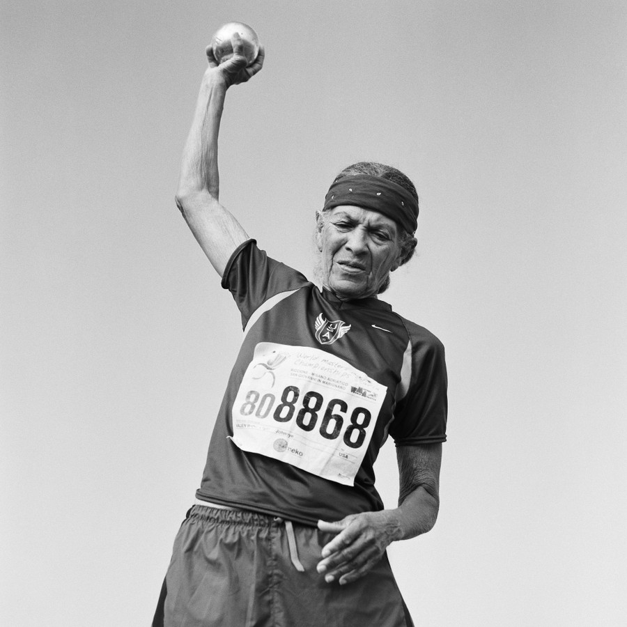 Angela Jimenez’s new book, Racing Age, explores a level of athleticism that many may not know was possible: competitive masters track & field for those athletes aged sixty and over. Jimenez, a former collegiate track & field multi-event athlete, has spent the last nine years traveling across the United States and Europe, photographing 81-year-olds jumping hurdles, 87-year-olds throwing discuses, and 76-year-olds pole vaulting. "Because they defy visual stereotypes, these athletes surprise us," she said. "They are not weak, or vulnerable, or just cute: they are fierce and competitive. It is inspiring and brave, but can also be scary to see an older person push the body to its limits."