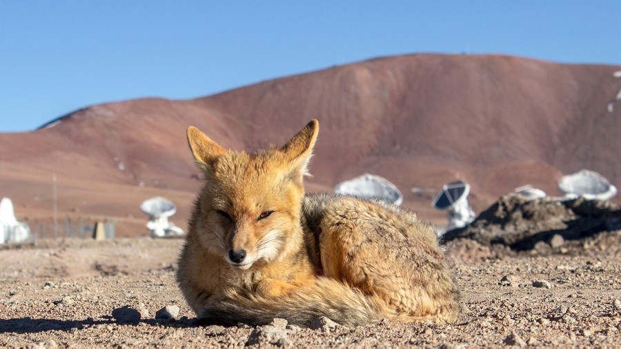 Read moreA graceful fox looks into the photographer's camera at the ALMA Antenna Operations Site, about 5,000 meters above sea level, in the Chajnantor plateau, Chile. Several of ALMA's antennas are visible in the background. The Andean foxes are a common sight at all ESO observatories. #