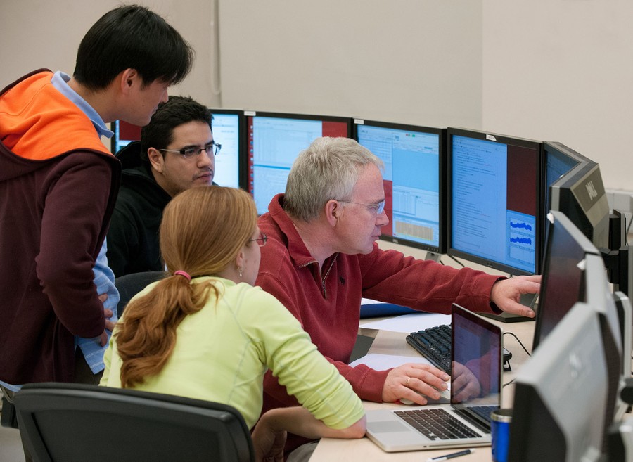 Read moreALMA Control Room, AOS Console. Antennae Array correlations by (left to right) Mareki Honma (Astronomer; Japan); Vasco Cortez (Engineer, Array operator; Chile); Adele Plunkett (Astronomer; US); and Rainer Mauersberger (Astronomer; ESO, Germany). #