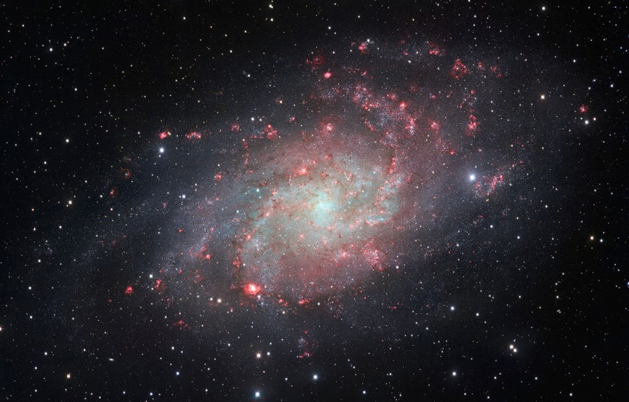 Read moreThe VLT Survey Telescope (VST) at ESO’s Paranal Observatory in Chile captured this beautifully detailed image of the galaxy Messier 33, often called the Triangulum Galaxy. This nearby spiral, the second closest large galaxy to our own galaxy, the Milky Way, is packed with bright star clusters, and clouds of gas and dust. This picture is among the most detailed wide-field views of this object ever taken and shows the many glowing red gas clouds in the spiral arms with particular clarity. #