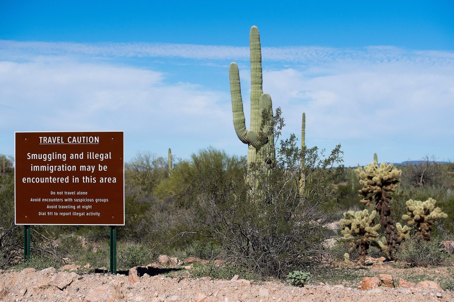 Read moreBorder Patrol Agent Barona checks out the area after receiving a call of seismic activity on a trail near the US–Mexico border in Tecate, California on February 14, 2017. #