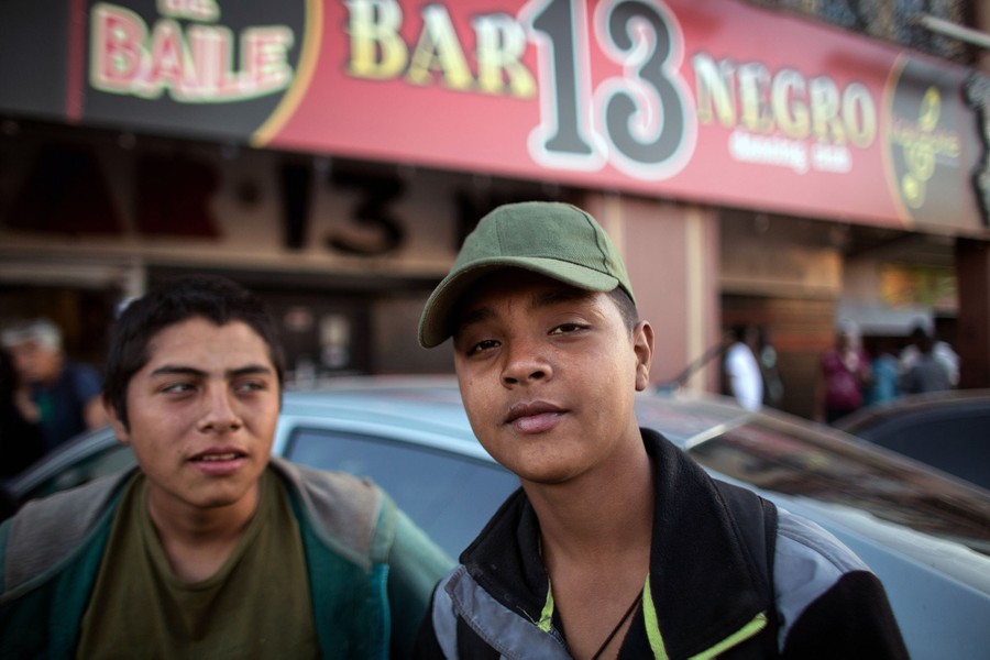 Read more16 year-old Wilfredo Linares (right) from Honduras, stands for a portrait as Jonathan David,16, from El Salvador looks on next to a migrant shelter downtown in Mexicali on February 14, 2017, in northwestern Mexico. #