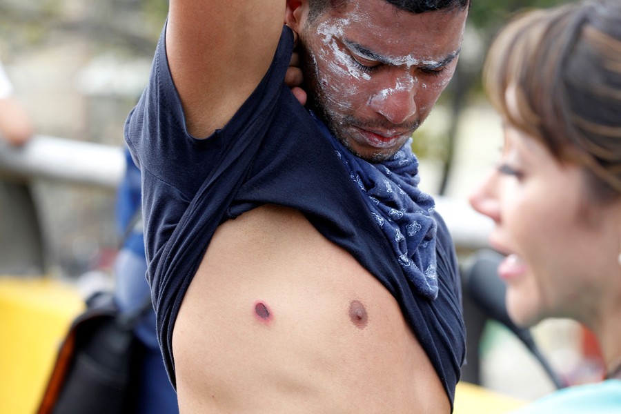 Read moreDemonstrators help a journalist who was injured while covering clashes between demonstrators and the Bolivarian National Guard during a protest in Caracas on April 10, 2017. #