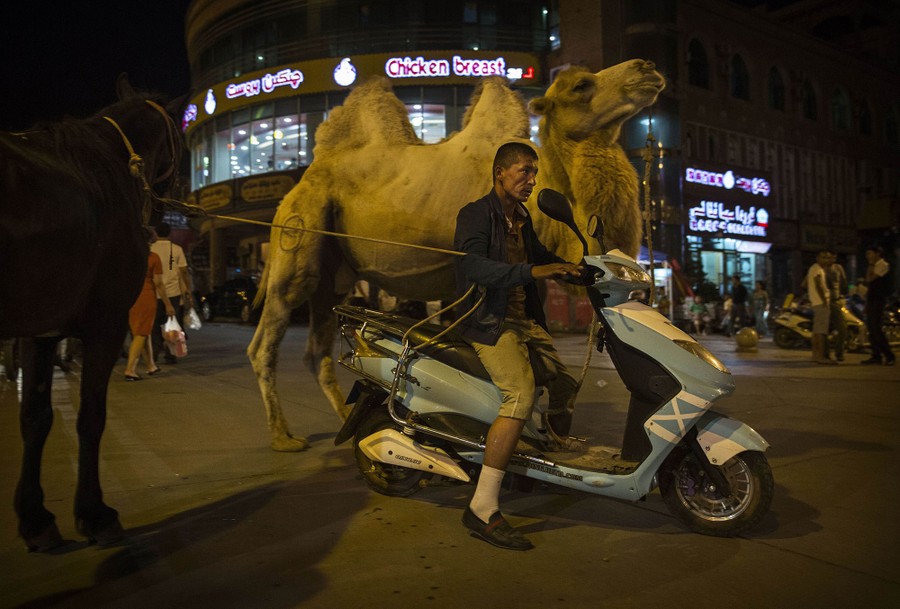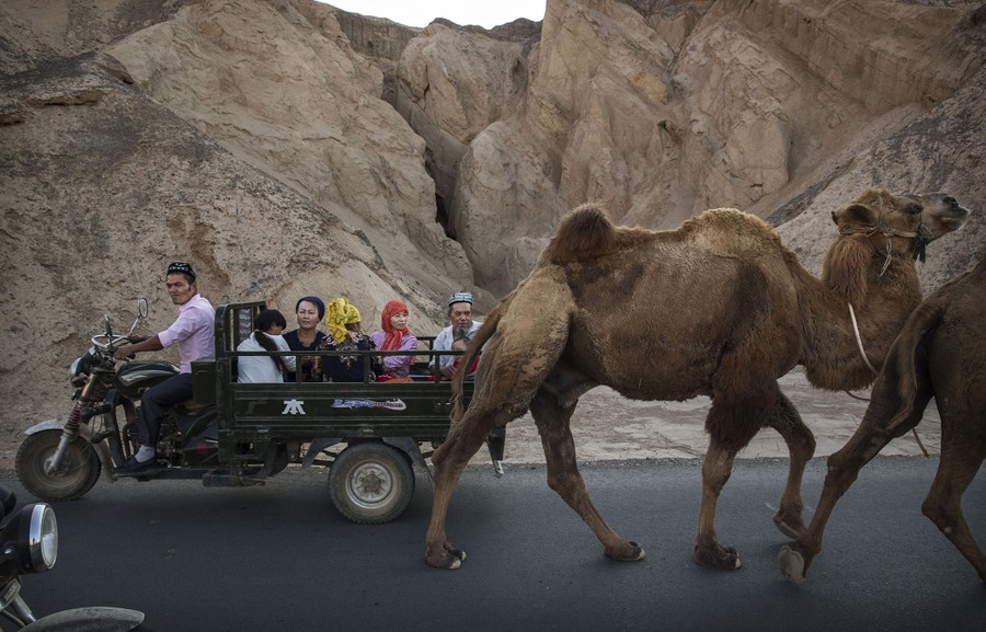 Read moreA Uighur family ride past a camel on a road during the Corban Festival on September 12, 2016, in Turpan County, in the far western Xinjiang province. The Corban festival, known to Muslims worldwide as Eid al-Adha or 'feast of the sacrifice', is celebrated by ethnic Uighurs across Xinjiang. The festival, considered the most important of the year, involves religious rites and visits to the graves of relatives, as well as sharing meals with family. #