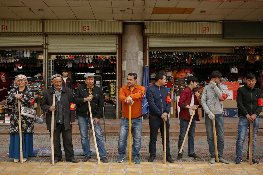 Read moreShopkeepers line up with wooden clubs to perform their daily anti-terror drill outside the bazaar in Kashgar, Xinjiang Uighur Autonomous Region, on March 24, 2017. Three times a day, alarms ring out through the streets of China's ancient Silk Road city of Kashgar, and shopkeepers rush out of their stores swinging government-issued wooden clubs. In mandatory anti-terror drills conducted under police supervision and witnessed by Reuters on a recent visit, they fight off imaginary knife-wielding assailants. Armoured paramilitary and police vehicles circle with sirens blaring. #