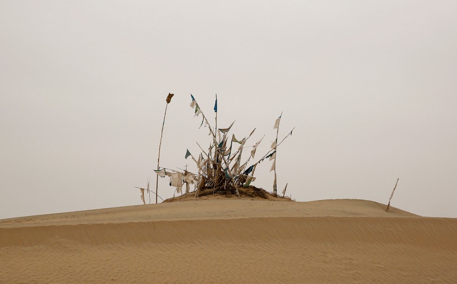 Read moreFlag-festooned poles stand over a grave in the cemetery surrounding the tomb of Imam Asim in the Taklamakan Desert outside the village of Jiya near Hotan, Xinjiang, on March 21, 2017. #