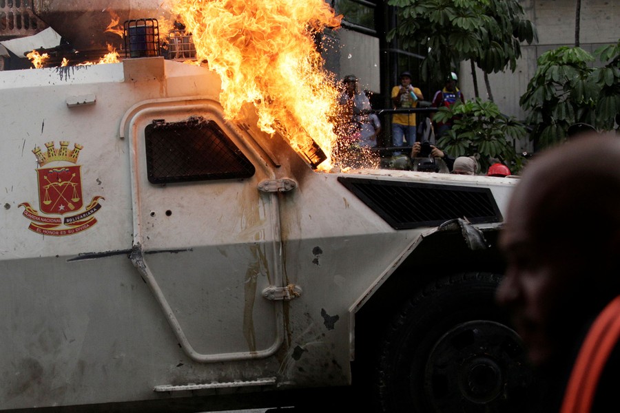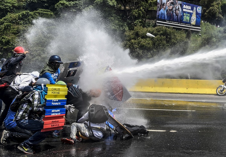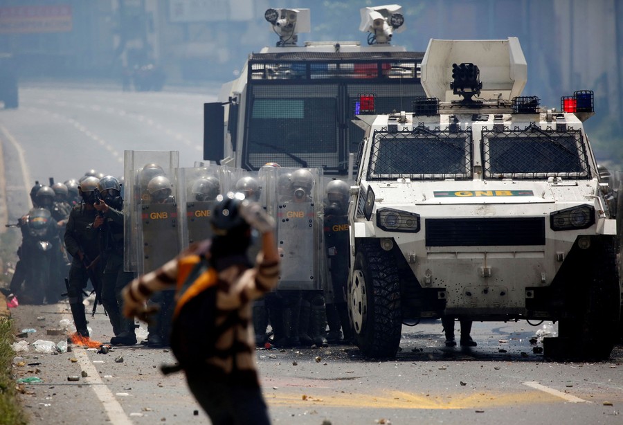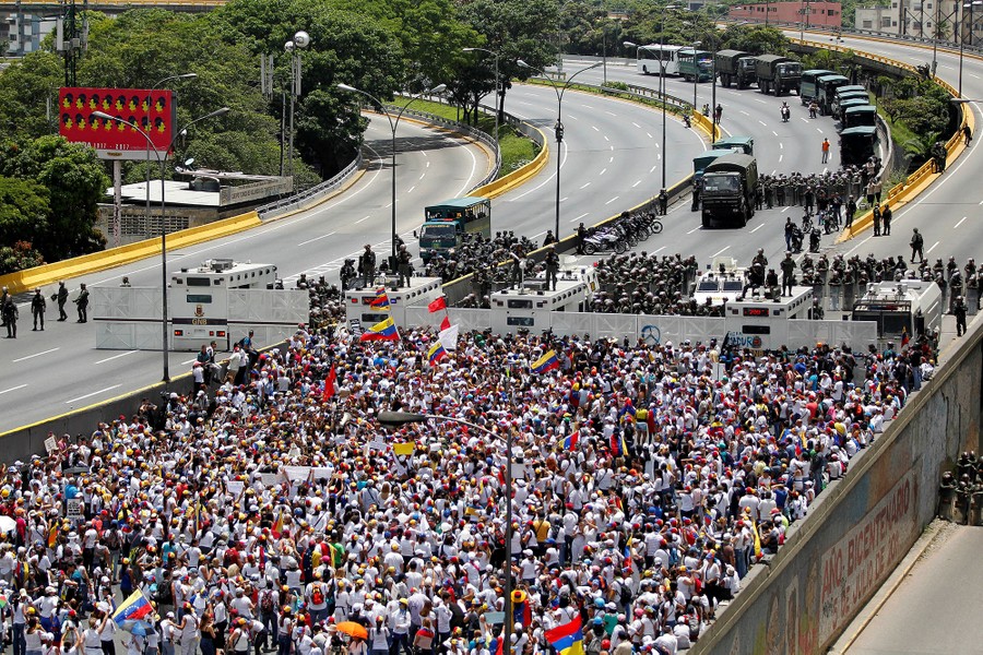 Since April 1, daily anti-government protests across Venezuela have frequently devolved into clashes with riot police, leaving thousands arrested, hundreds injured, and 43 dead. Opposition activists are protesting against the government of President Nicolas Maduro, blaming him for a crippling economic crisis that has caused widespread food shortages for years. Venezuelan opposition leaders are demanding immediate presidential elections, accusing Maduro of political repression and trying to cling to power.