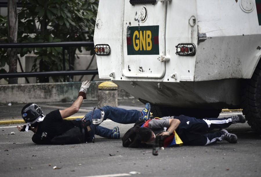 Read moreOpposition activists are run over by a charging National Guard riot control vehicle during a protest against Venezuelan President Nicolas Maduro, in Caracas on May 3, 2017. #