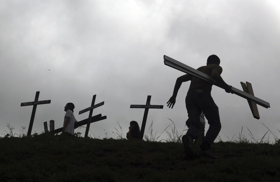 Read morePeople place crosses, representing people who have died during the most recent opposition protest movement, on the side of the highway during a national sit-in against President Nicolas Maduro, in Caracas on May 15, 2017. #