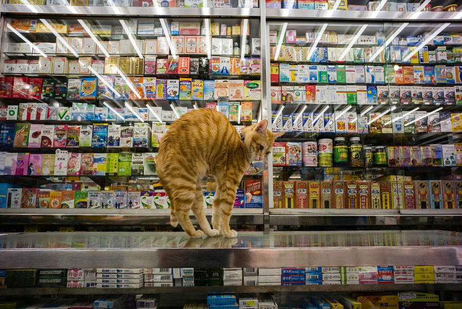 Read moreA cat stretches on a counter top in a Chinese and western medicine shop in Hong Kong on December 12, 2016. Four-legged "assistants" can be found perched in certain shops across Hong Kong, keeping a nonchalant eye on business while the city does its non-stop bustle past their storefronts. #