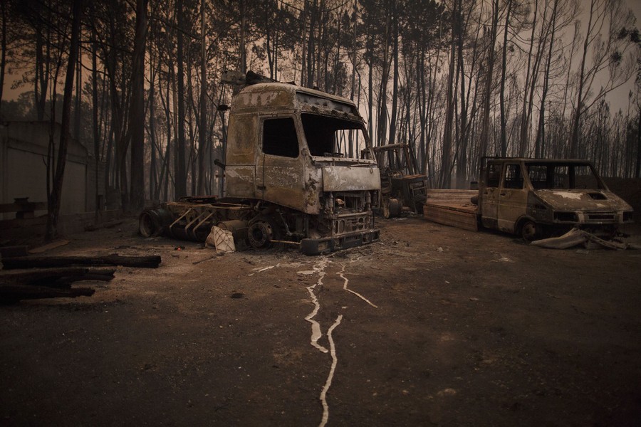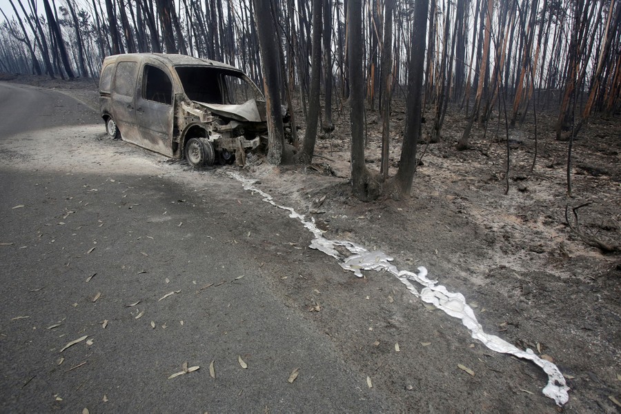 Over the weekend, wildfires in central Portugal killed at least 63 people and injured 135 others, many of them killed while trapped in their cars. More than 1,600 firefighters are still battling the fires, which are believed to have been triggered by lightning strikes during a recent heat wave. Portugal called for three days of mourning to be observed for the victims of one of the most deadly forest fires in its recent history.