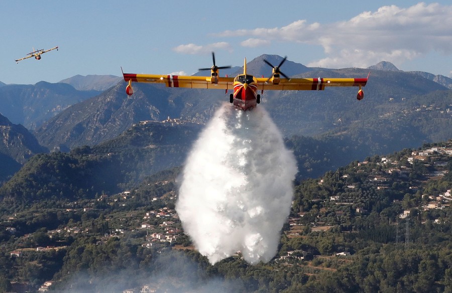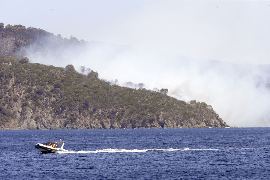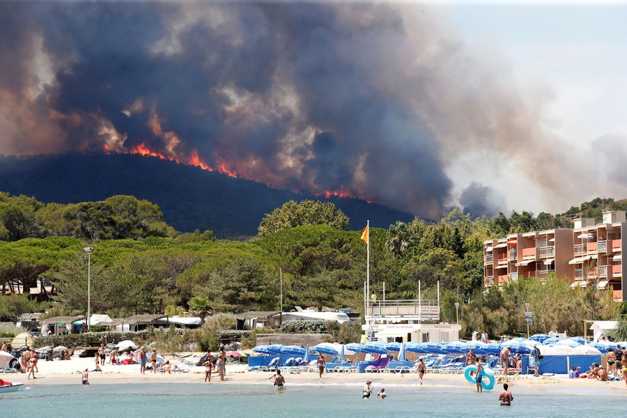 French authorities have evacuated more than 10,000 people from parts of southern France, ahead of several raging wildfires along the Mediterranean coast. Hundreds of firefighters are engaged on the ground and in the air, chasing fires driven by strong winds and tinder-dry conditions. Photos here are from the past few days along the French Riviera.