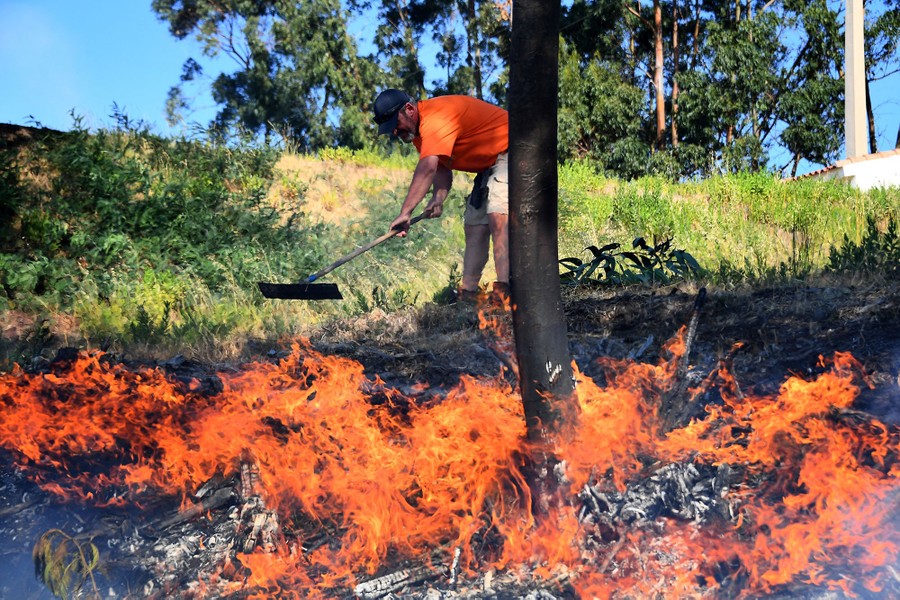 Read moreA man tries to extinguish a fire burning in Bormes-les-Mimosas on July 26, 2017. #