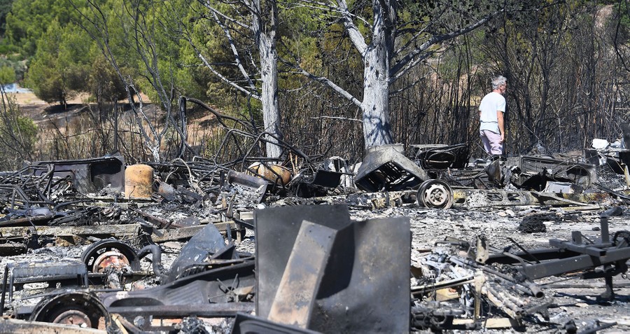 Read moreA man inspects the damage following a fire in Bormes-les-Mimosas, France, on July 26, 2017. #