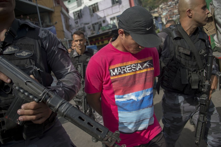Read moreA man is taken into custody by special forces during a joint operation by the police and Brazilian Armed Forces to fight heavily armed drug traffickers in Rocinha on September 22, 2017. #
