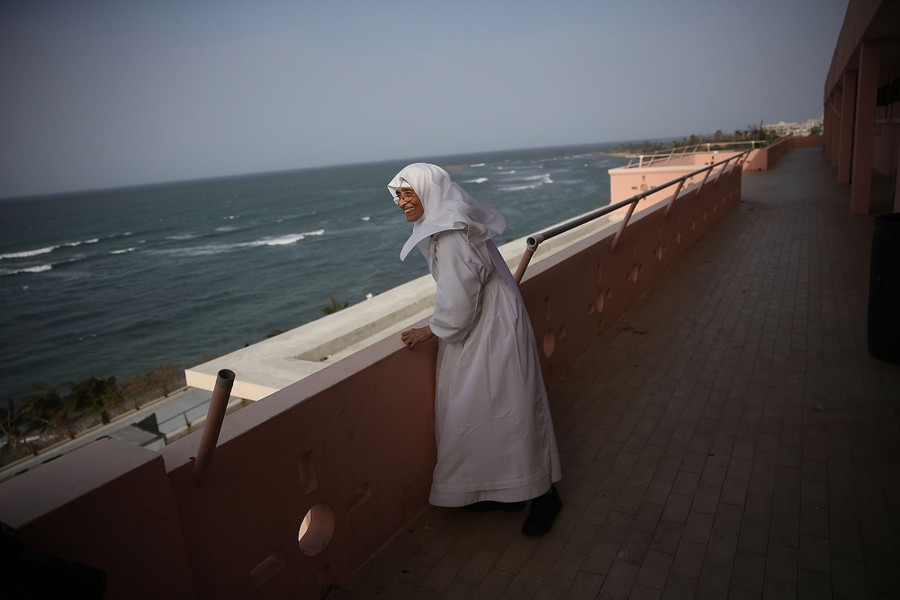 Read moreSister Gloria Flores looks out from a balcony of the Hermanitas de los Ancianos Desamparados facility, which cares for the elderly, on September 26, 2017, in San Juan. Sister Flores hopes aid—including fuel for their generators, food, and medicine—arrives soon, as they care for their more than 195 elderly patients after Hurricane Maria devastated the island. #