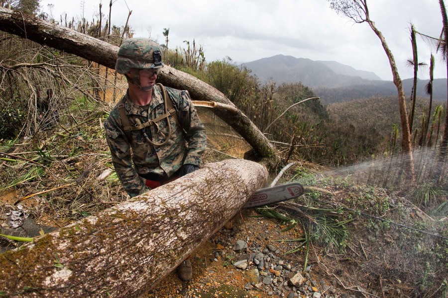 Read moreA U.S. Marine with Battalion Landing Team 2nd Battalion, 6th Marine Regiment, 26th Marine Expeditionary Unit, uses a chainsaw to cut a tree blocking a road as part of Hurricane Maria relief efforts in Ceiba, Puerto Rico, on September 27, 2017. The 26th MEU is supporting the Federal Emergency Management Agency and local authorities in Puerto Rico. #