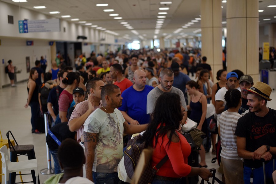 Read morePeople wait in a line to check flights at Luis Munoz Marin International Airport, in San Juan, Puerto Rico, on September 26, 2017, as some flights are still being rescheduled for one or two weeks. #