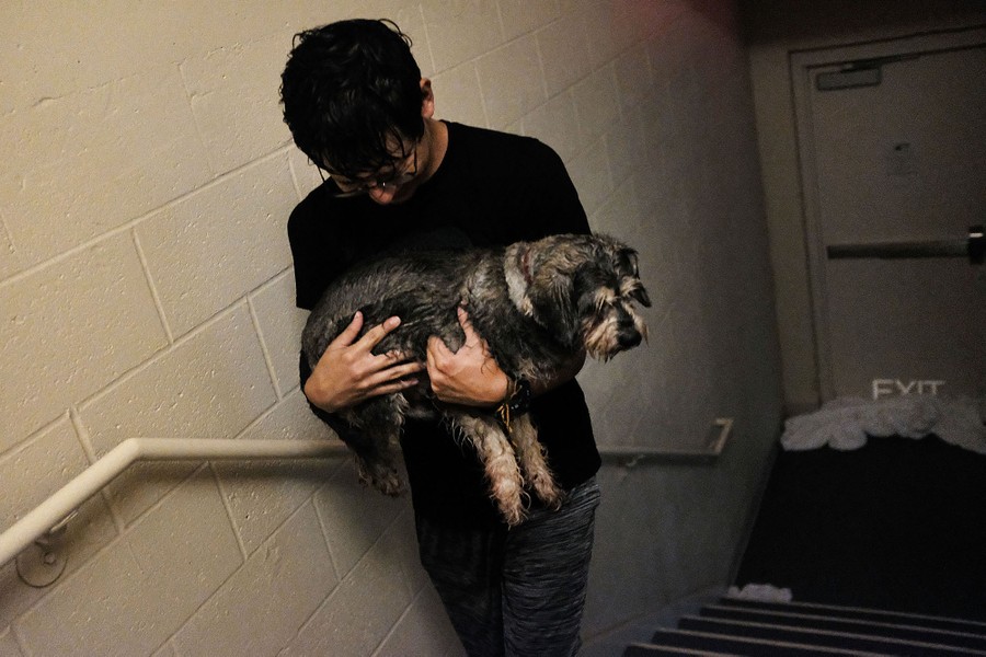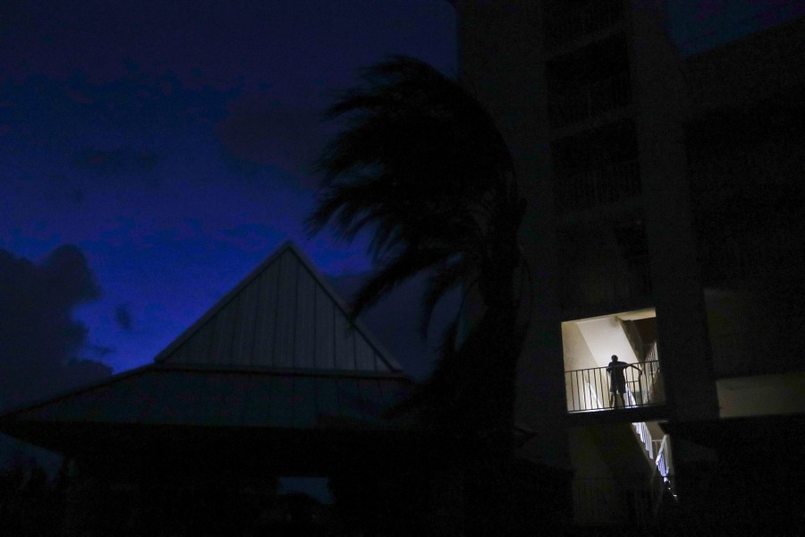 Read moreLaura Raymond walks down the stairs with a flashlight while leaving her mother-in-law's fourth floor apartment, where she rode out Hurricane Irma with her family, to return to their low-lying home a mile away in Marco Island, Florida, on September 11, 2017. #