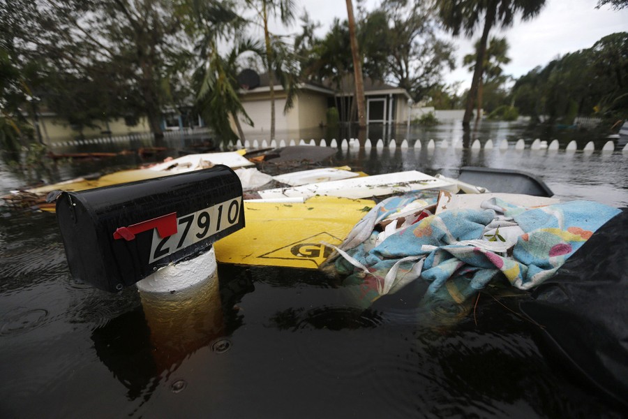 Read moreTwo people pass a man in a canoe as they wade through the flooded streets of the San Marco historic district of Jacksonville, Florida, on September 11, 2017, after a storm surge from Hurricane Irma left the area flooded. #