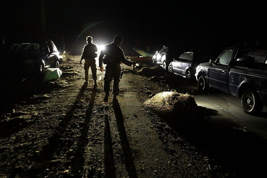 Read moreFlorida Army National Guard Captain Adam Cockrell and Private First Class Daniel Jimenez from Delta Company, 1st Battallion, 124th Infantry, 53rd Infantry Brigade Combat Team, inspect vehicles left on a bridge connecting Big Pine Key and No Name Key in Marathon, Florida, on September 12, 2017. Working in conjunction with the Monroe County Sheriff's Department, the guardsmen traveled up and down the Keys all night to deter looting and to make safety checks on residents. #